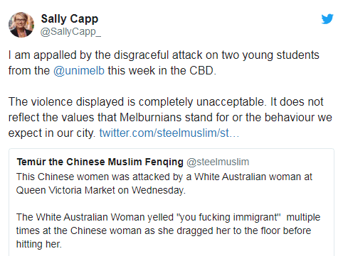 對此,墨爾本市市長莎莉·凱普表示,她對這起“可恥的襲擊”感到“震驚”。