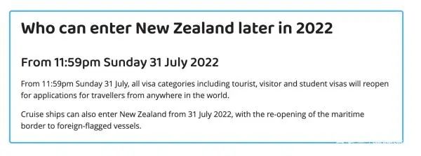 這一消息意味著:除新西蘭公民、居民以及澳洲公民之外,只要持有有效簽證的人都可以入境新西蘭!