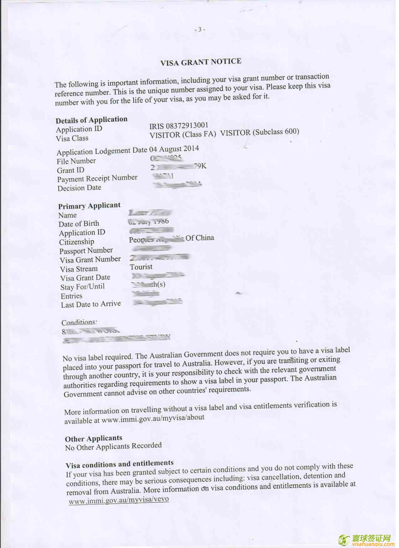 澳大利亞旅游簽證一年多次電子簽證頁: