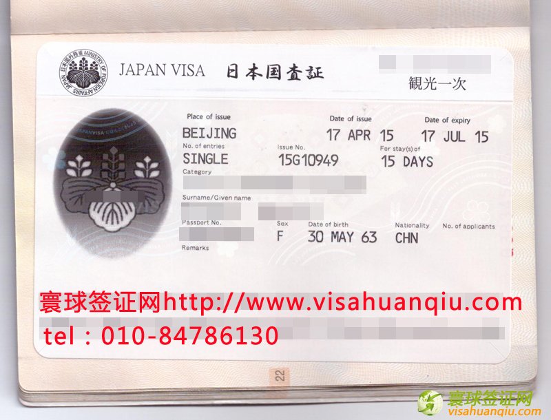 簽證類別:日本旅游簽證