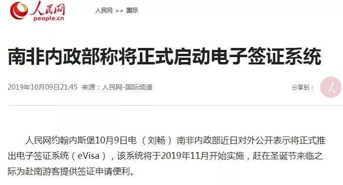 南非內政部今年7月表示,將于今年11月正式推出電子簽證系統(eVisa),以便趕在圣誕節來臨之際為赴南游客提供證簽證申請便利。不過目前官方還未給出詳細實施時間和細則。