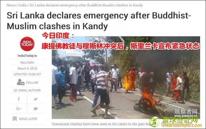 據報道,斯里蘭卡中部城市康提(Kandy)的佛教徒和穆斯林爆發沖突,政府宣布在全國實施為期10天的緊急狀態令。在另行通知前該地區將持續實行宵禁。