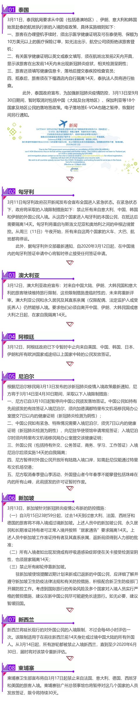 新型肺炎疫情已經(jīng)擴(kuò)散到全球的132個(gè)國家和地區(qū)。本周全球受到新型冠狀病毒的持續(xù)影響,多國陸續(xù)發(fā)布新的入境管控措施。