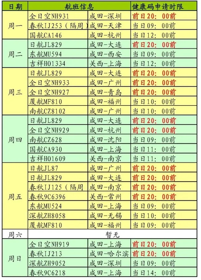 為降低疫情跨境傳播風險,自日本搭乘航班赴華的中、外籍乘客,須憑有“HS”(中國籍)或“HDC”(外籍)標識的綠色健康碼登機。請計劃赴華的乘客請務必閱讀以下通知。