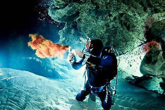 一處充滿水的洞穴,只能潛水進去,隨時都有迷路在其中的可能。在這黑暗的水中洞穴中,即使你帶有最強的水下電筒,你也不可能看到幾米以外的東西,即使最輕微的動昨,都會帶起來水底一片片的白砂,這些白霧如果讓你迷失方向了,那將是致命的。