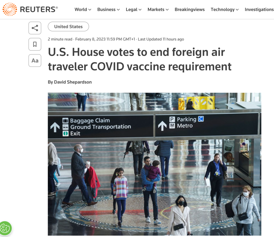 民主黨議員則認為,按照這一新法案的規定,即使將來出現病例增加或病毒再次變異的情況,也無法再強制要求旅客提供疫苗接種證明,會把更多人置于危險境地。