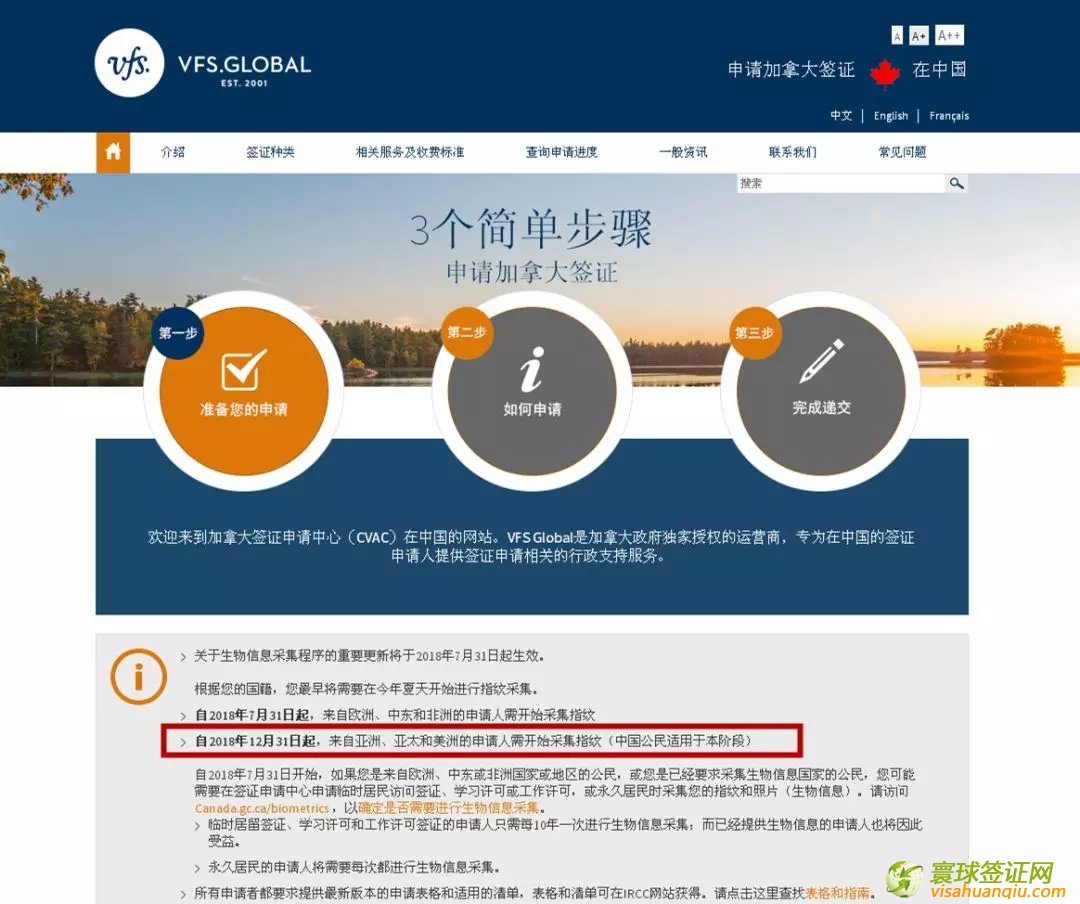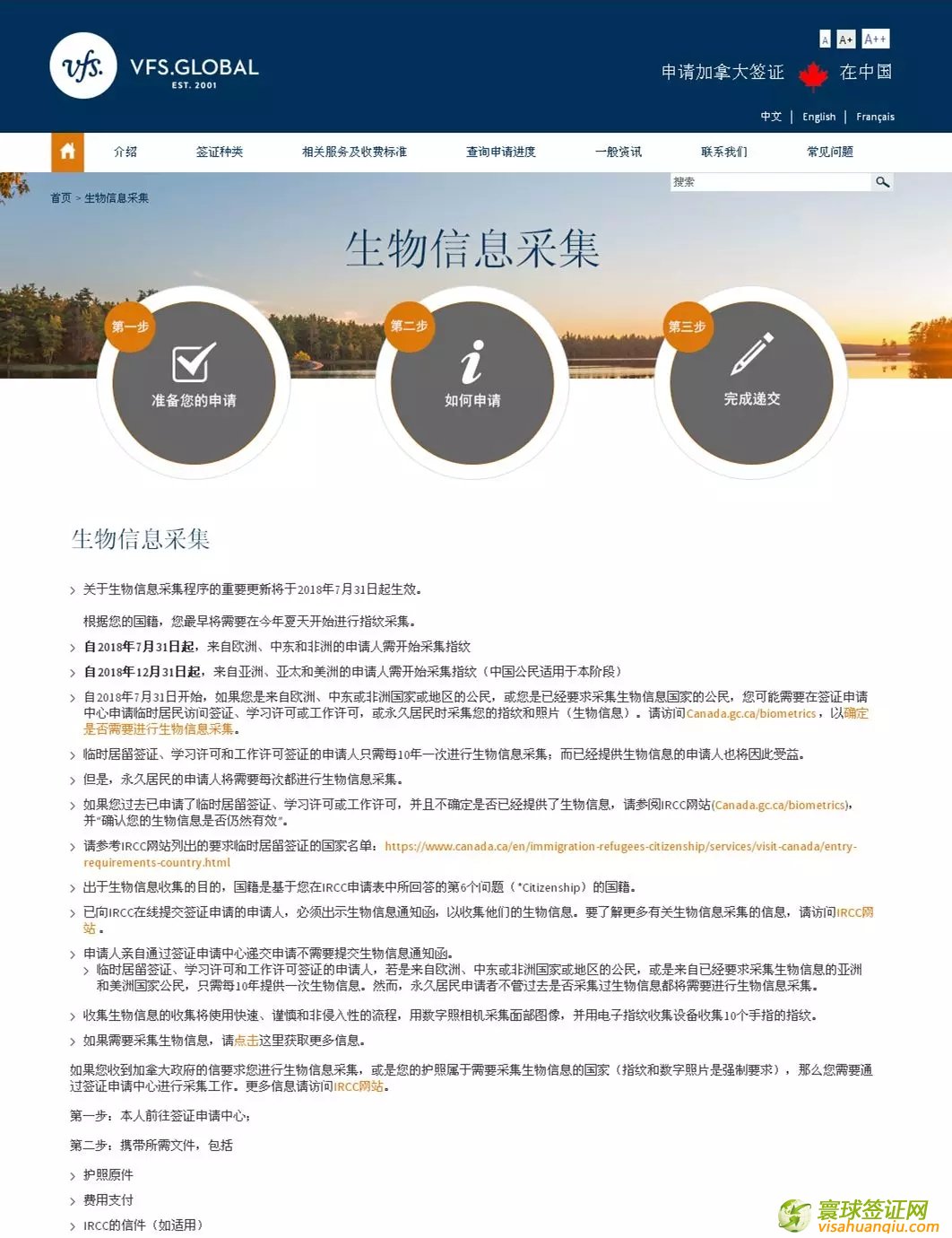 注意:在此之前取得的多次入境簽證在有效期內前往加拿大無需采集指紋。
