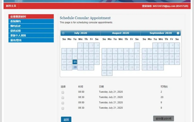 美國駐上海領事館今日預約時間(最早7月21日)