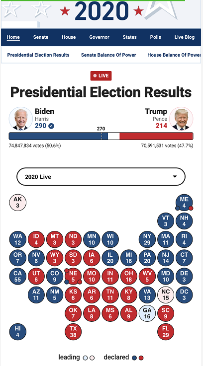 拜登并且有望贏得超過400萬的全國民眾投票,隨著選票繼續被計算,這一差距可能會增加。
