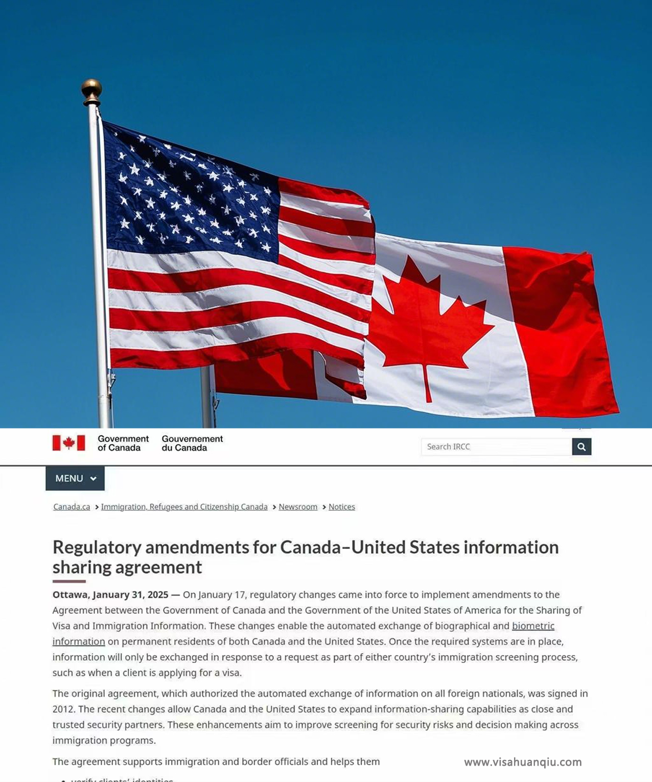 重磅消息!加拿大新規生效,現在加拿大和美國將自動交換永久居民的生物信息和生物識別數據!這對移民和簽證申請有什么影響?一起來看