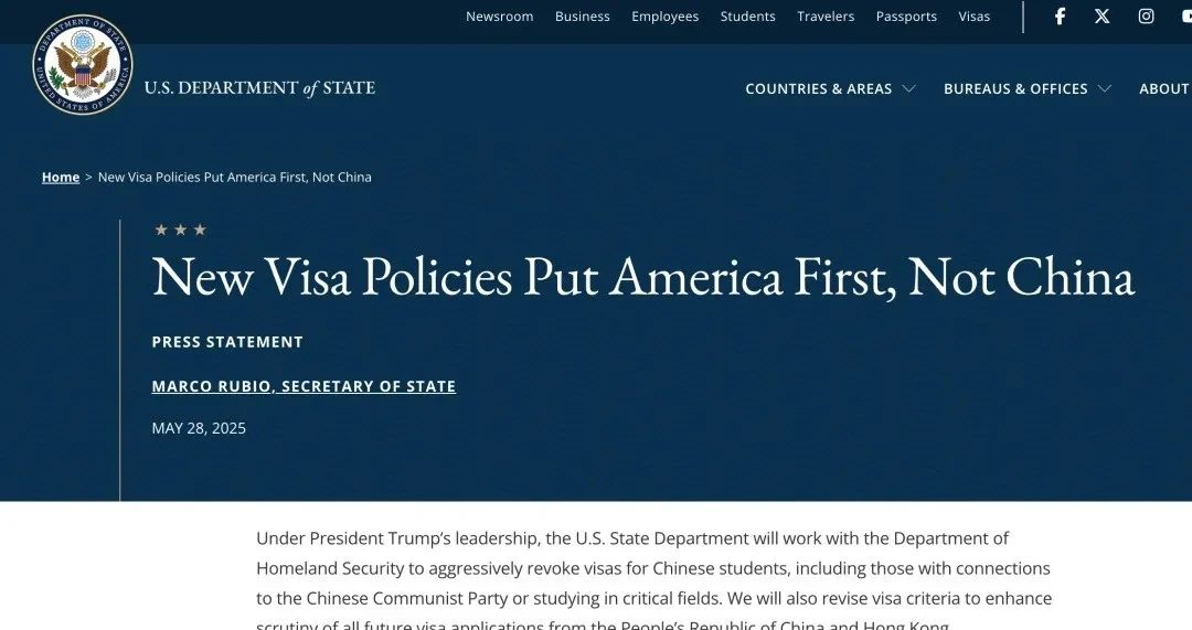 美東時間5月28日下午6時許,美國國務院發布一份聲明稱,美國國務院將和美國國土安全部共同合作,開始撤銷中國留學生的簽證,包括在關鍵領域學習的學生。