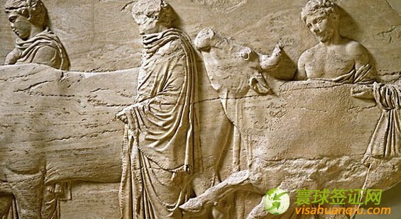 在現存的浮雕中,仍然可以看出浮雕的鬼斧神工之處。特別是雅典青年騎馬游行的大段浮雕,無論是昂首前奔的駿馬還是執韁坐鞍的青年,都刻畫得生氣怏然。人的體態、馬的運動以及飄揚的衣襟都處理得恰到好處。激烈運動和興高采烈之中又飽含著端莊典雅之美。更可貴的是,數以百計的人和馬的形象竟然沒有一個是雷同的。他們在向前行進的態勢中有跳躍、飛奔、暫歇、舉步、備鞍等各種動作,更不必說身形面容、個性氣質等差異了。整個浮雕有如一首壯麗的交響樂。