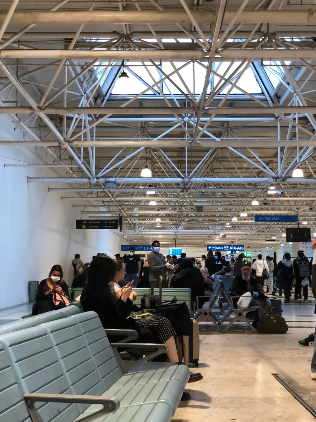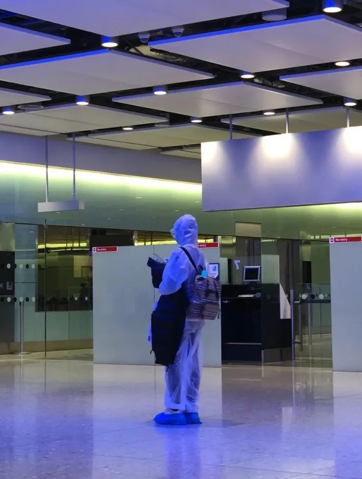 倫敦當地時間下午16:00到達希思羅T2, 自助辦理值機、托運行李、安檢、沒有測體溫。倫敦這邊安檢還跟往常一樣,并沒有特殊之處。機場多的是防護做到位的留學生。全副武裝。