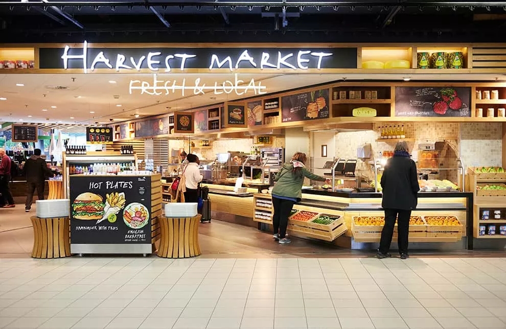 Harvest Market,位于D候機區,開放時間時有變動,請現場查看。在這里可以買到熱食和三明治,果汁飲料等。