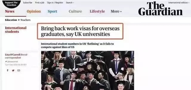 2018年9月,英國大學(xué)校長們集體呼吁英國政府重新引入一種簽證,允許海外學(xué)生畢業(yè)后在英國工作長達(dá)兩年,類似于之前的“PSW”簽證。