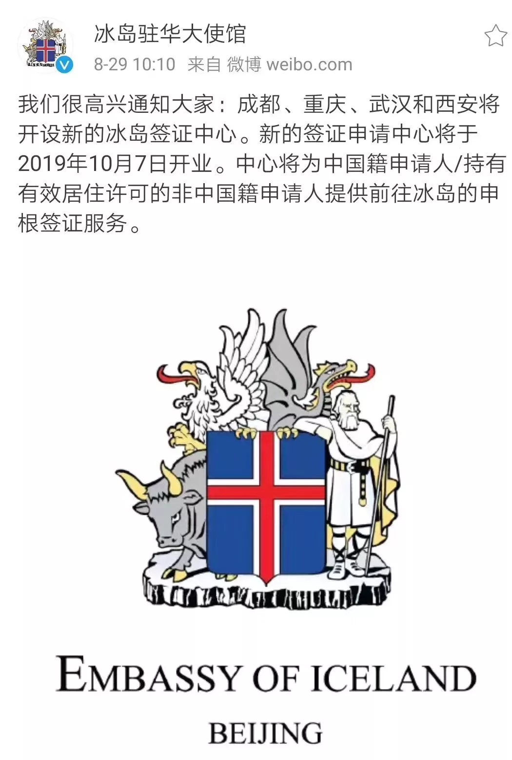 成都、重慶、武漢和西安將開設新的冰島簽證中心。新的簽證申請中心將于2019年10月7日開業。中心將為中國籍申請人/持有有效居住許可的非中國籍申請人提供前往冰島的申根簽證服務。