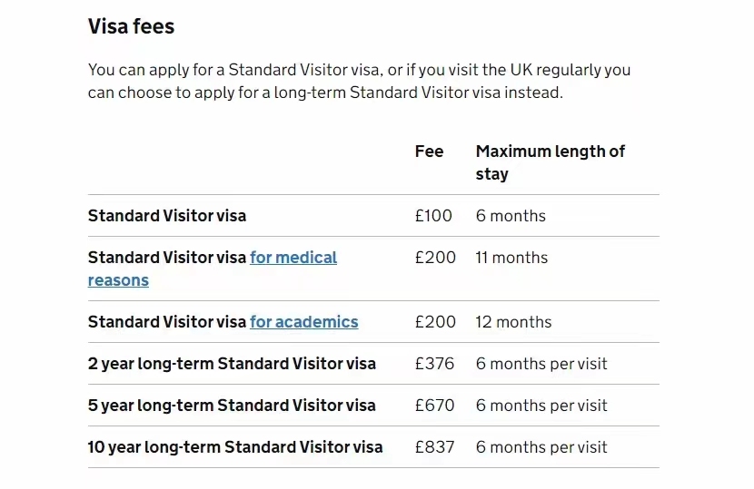 和申根國家簽證不同,英國旅游簽證有效期是固定的,停留天數也是相對固定的,從2016年1月起,來自中國的游客可以享受有效期為2年的多次入境英國訪客簽證,停留期是180天,其實相當于繳納的是半年的簽證費,但簽證一般會給2年多次,也相當于是一種福利,目前英國可以申請的旅游簽證時間從2年到10年不等,不同的申請年限,也就意味著需要繳納不同的簽證費用