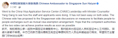 4月12日電,中國駐新加坡大使孫海燕12日在社交平臺上表示,中方已向新方提出愿就互免簽證等便利雙方人員往來措施進行商談,希望雙方主管部門盡快談出成果。 目前,中國旅客前往新加坡還須提前通過旅行社辦好簽證,雖然新加坡是電子簽證,但申請時依然需要提交...