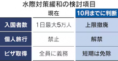 據(jù)日本TBS電視臺消息,日本政府9月22日宣布,自10月11日起放寬入境管控措施,將撤銷每日5萬人入境人數(shù)上限、恢復(fù)部分國家短期訪客的免簽政策,并取消境外訪客個人旅行限制。 日本政府稱,目前日元貶值,希望借此招攬外國觀光游客。談及外國游客是否需在旅途中...