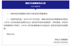 新冠肺炎更名為新型冠狀病毒感染,1月8日起實施乙類乙管。中國取消入境隔離! 國家衛健委26日晚發布公告: 一、將新型冠狀病毒肺炎更名為新型冠狀病毒感染。 二、經國務院批準,自2023年1月8日起,解除對新型冠狀病毒感染采取的《中華人民共和國傳染病防治法...