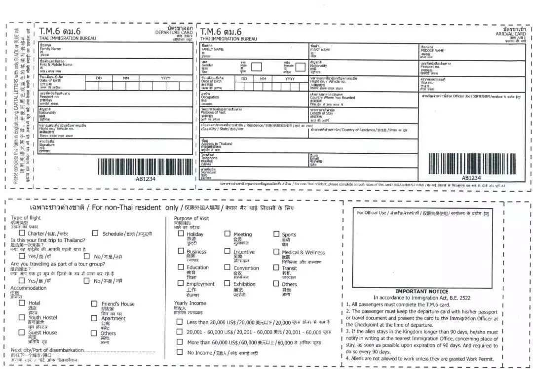 在該份政府文件中對本次更改做出了說明:“過去的一段時(shí)間里,外籍游客來泰旅游人數(shù)持續(xù)上漲,特別是中國和印度游客。這兩國游客在入境時(shí)經(jīng)常在出入境時(shí)因語言不通遇到困難,填寫出入境卡(TM.6)信息不完全,進(jìn)一步導(dǎo)致邊檢工作人員在檢查游客入境資格時(shí)速度減緩。為了提高服務(wù)效率,解決中國游客和印度游客的語言障礙,特此進(jìn)行改進(jìn),使他們能夠快速、準(zhǔn)確、完整地填寫信息。”