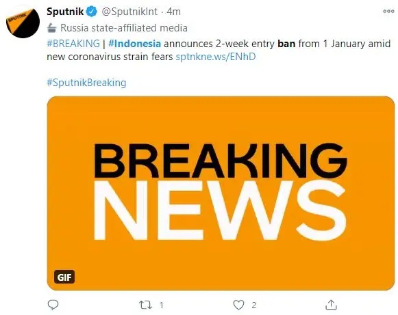 印度尼西亞政府28日宣布,由于出現傳播能力更強的變異新冠病毒,印尼將從2021年1月1日至1月14日暫停所有外籍人員入境印尼。