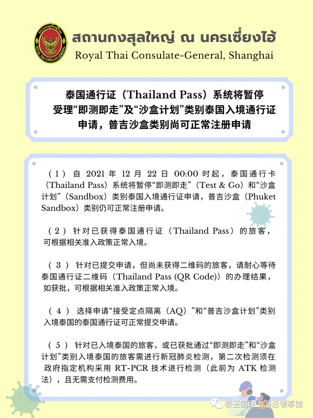 今日泰國駐上海領事館也發布了通知:暫停“免隔離”計劃